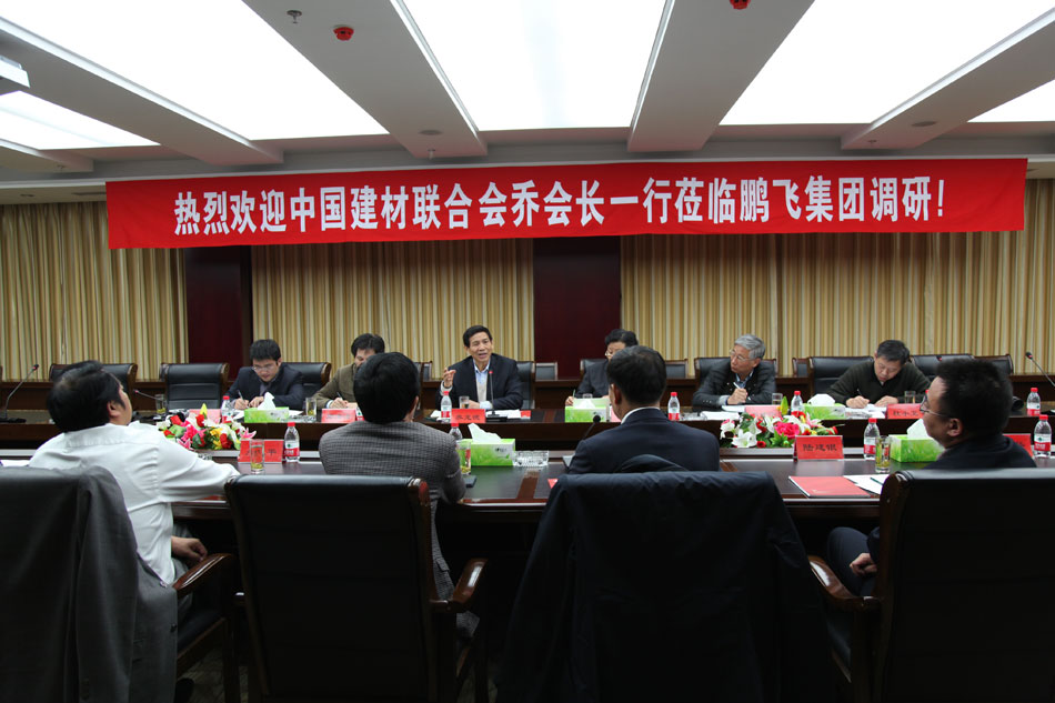 2014年11月25日,中國建材工業聯合會喬龍德會長到江蘇鵬飛集團現場考察,喬會長一行參觀了集團位于城北工業園的窯爐和節能粉磨設備生產現場、科技成果展廳,聽取了鵬飛集團董事長王家安關于落實全國建材系統工作會議精神和鵬飛集團轉型升級等方面的情況匯報。