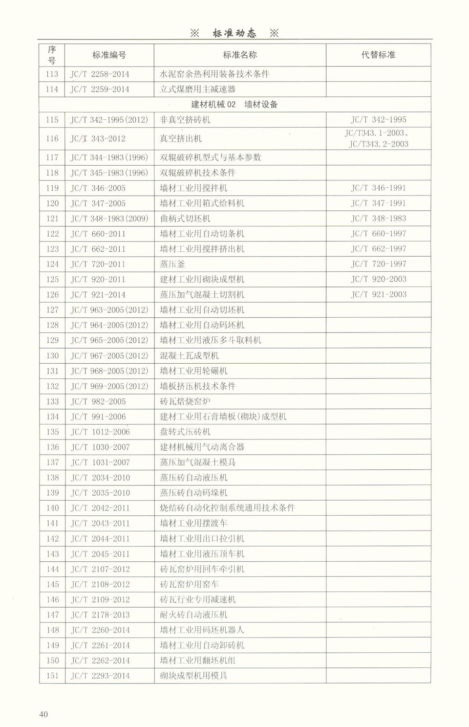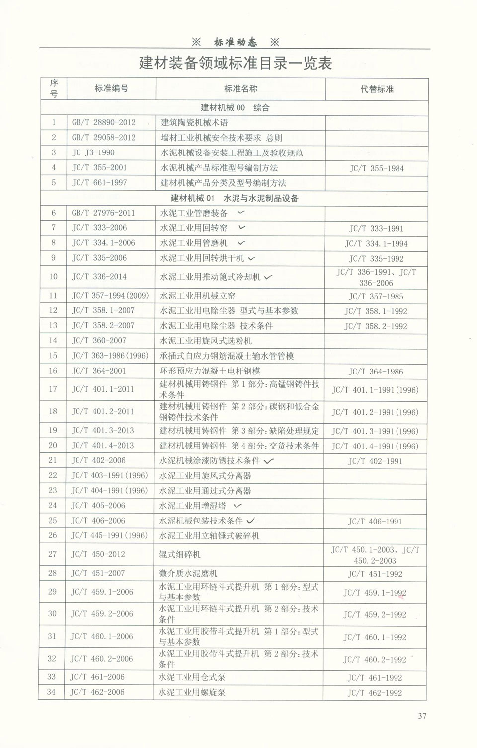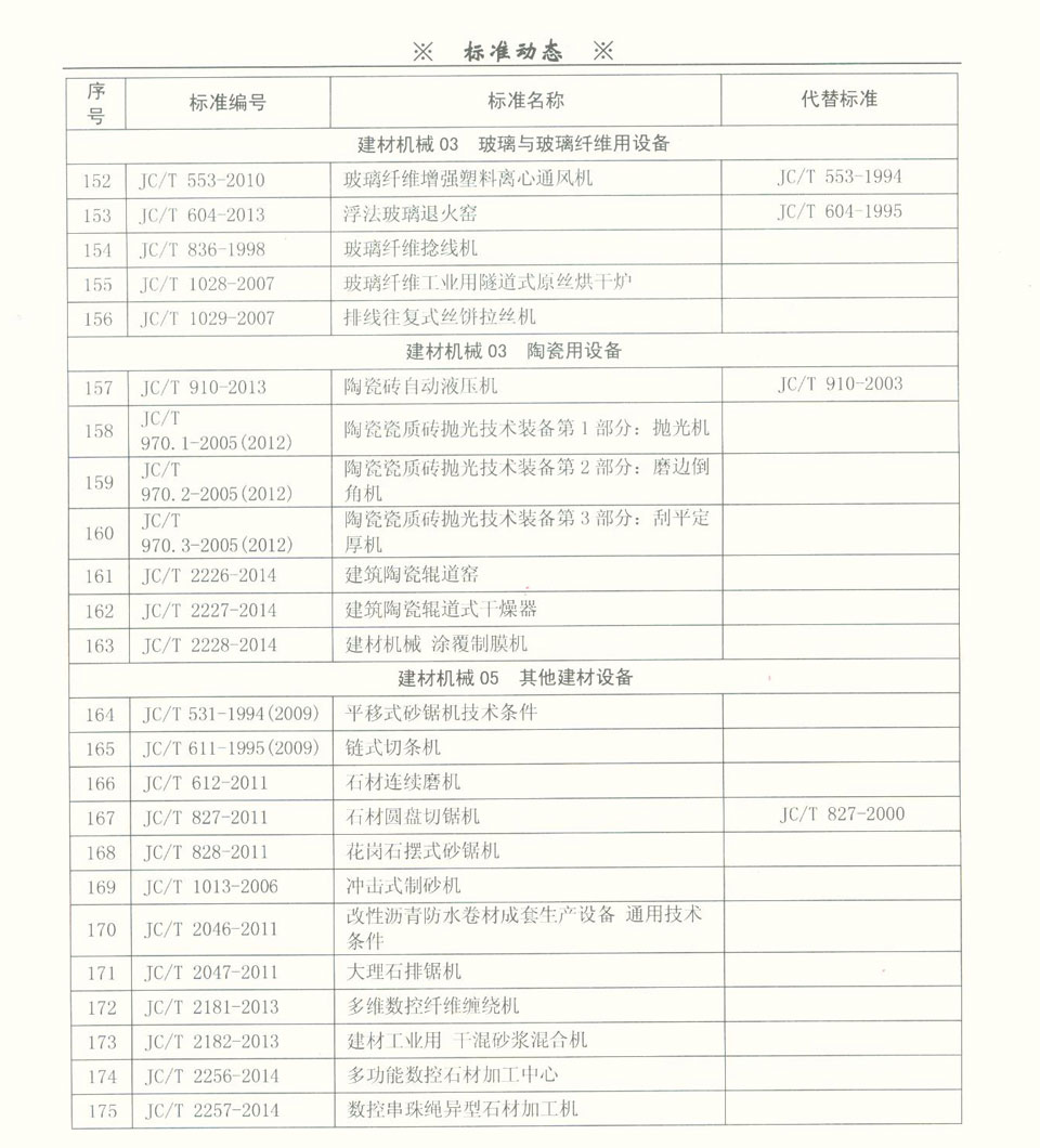 建材裝備領域標準目錄一覽表