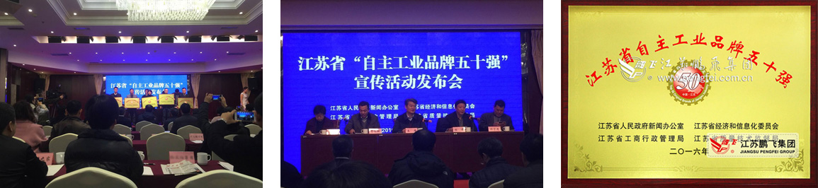 12月19日上午,由省政府新聞辦、省經信委、省工商局、省質監局牽頭組織的2015江蘇“自主工業品牌五十強”宣傳企業遴選工作落下帷幕,四部門聯合召開新聞發布會向上榜企業現場發放獎牌予以表彰,江蘇鵬飛集團憑借多年的優秀業績與雄厚的加工制造實力榮膺榜單之列。