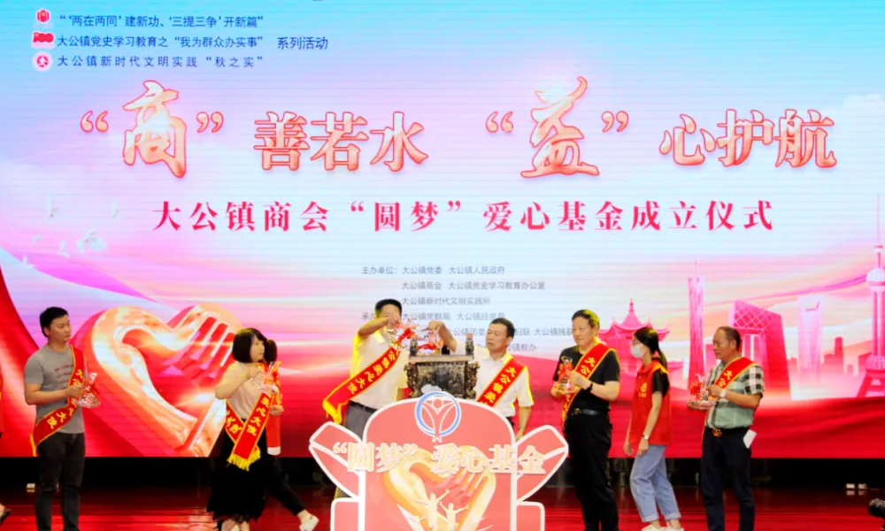 9月10日下午,大公鎮(zhèn)開展“商”善若水 “益”心護航——大公鎮(zhèn)商會“圓夢”愛心基金成立儀式暨捐贈助學(xué)活動。海安市政協(xié)副主席、市工商聯(lián)主席蔡祝平,海安黨史學(xué)習(xí)教育第五巡回指導(dǎo)組組長沙祥生,海安團市委書記徐立,海安市教體局副局長崔益豐,海安市婦聯(lián)副主席金華,海安市總工會黨組成員顧登峰,海安市殘聯(lián)副理事長包麗梅,海安市委宣傳部未成年人思想道德建設(shè)科科長奚海寧,市教體局教育工委婦聯(lián)主席陳萍,體育科科長王進出席活動。大公鎮(zhèn)黨政負(fù)責(zé)人,各局辦中心負(fù)責(zé)人,駐鎮(zhèn)單位負(fù)責(zé)人,各基層黨(總)支部書記,商會會員企業(yè)家代表,各村團支部書記、婦聯(lián)主席,青年教師代表,受助困境青少年代表等參加活動。