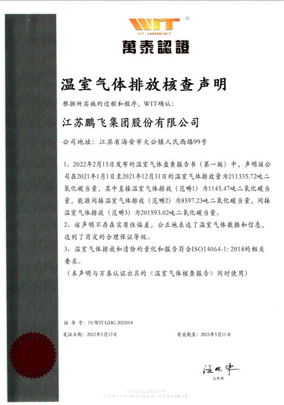 江蘇鵬飛集團(tuán)股份有限公司一直以來(lái)堅(jiān)持綠色采購(gòu),綠色生產(chǎn),綠色物流的原則,積極響應(yīng)并參與相關(guān)方(政府、客戶等)節(jié)能降排、碳排放報(bào)告活動(dòng)。