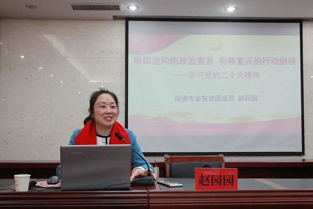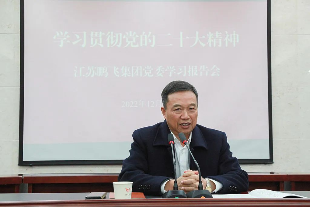 近日,深入推進學習宣傳貫徹黨的二十大精神在鵬飛集團蔚然成風,12月7日下午,南通市委宣講團成員,南通市委黨校副校長、教授趙園園走進鵬飛,來公司開展學習貫徹黨的二十大精神專題宣講,進一步引導鵬飛人把思想和行動統一到黨的二十大精神上來。鵬飛集團在新征程上用黨的創新理論武裝頭腦、指導實踐、推動工作,更好地“扛起新使命、譜寫新篇章”,以實際行動和過硬成果推動黨的二十大精神落地見效。大公鎮黨委書記金山存、黨委副書記閻超、宣傳委員徐譯,鵬飛集團黨委書記、董事長王家安等認真聽取了宣講內容,經發局全體人員、鵬飛集團全體負責人、工人代表等參加專題學習。