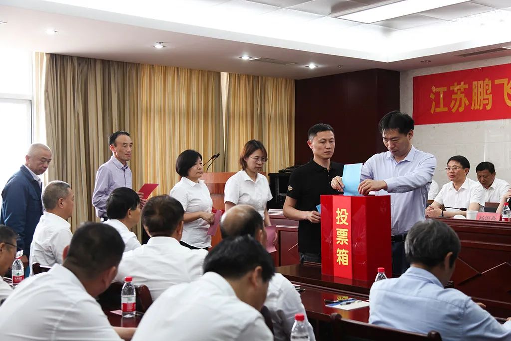 5月16日,江蘇鵬飛集團股份有限公司工會召開五屆一次會員代表大會,海安市總工會黨組書記、主席楊海燕,大公鎮黨委書記金山存,黨委副書記、工會主席閻超,鵬飛集團黨委書記、董事長王家安,副總經理施鵬宇出席會議。