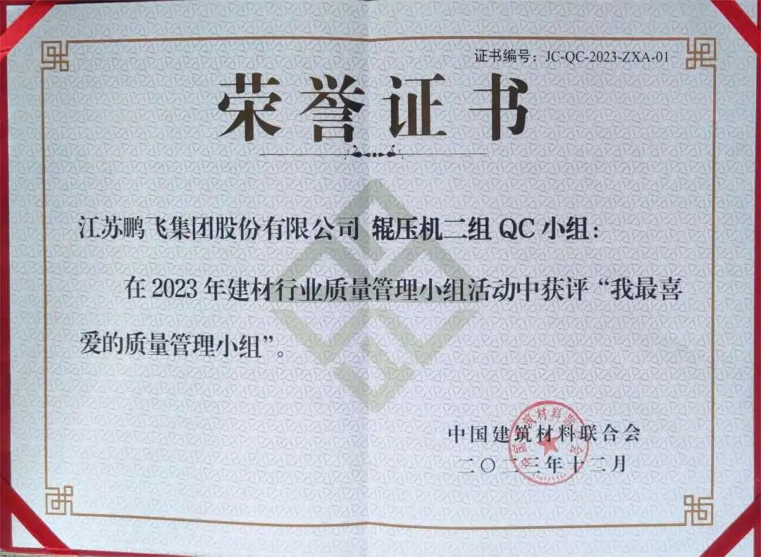 會上,鵬飛集團作了2024年建材行業(yè)質(zhì)量管理小組活動成果和質(zhì)量信得過班組建設(shè)典型經(jīng)驗發(fā)表,以下是鵬飛輥壓機二組QC小組的課題。
