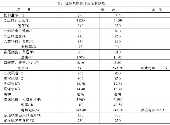 項目投產后,燒成系統的主要操作及控制參數見表2。