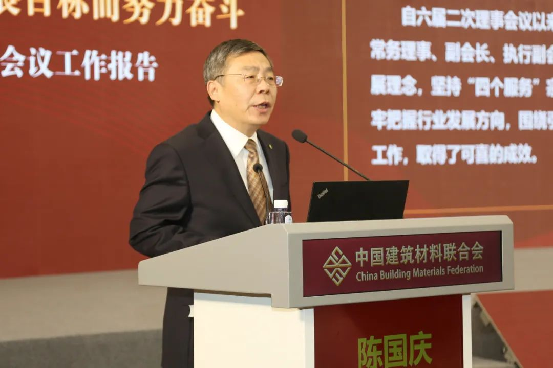 受會長閻曉峰委托,陳國慶代表中國建筑材料聯合會六屆理事會作題為《堅持綠色低碳安全高質量發展 堅持“四個服務”工作定位 為實現“宜業尚品、造福人類”行業發展目標而努力奮斗》的工作報告。報告回顧了聯合會近一年來的工作情況,分析了面臨的形勢任務,提出了下一步工作思路舉措。