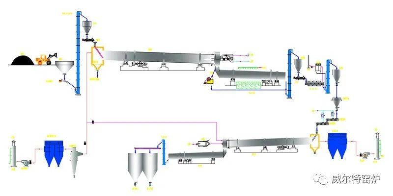 主要設備配置:酸化攪拌機、焙燒窯、單筒冷卻機、酸化窯、酸化窯配套冷卻窯、原料磨機、袋式收塵器、風機等