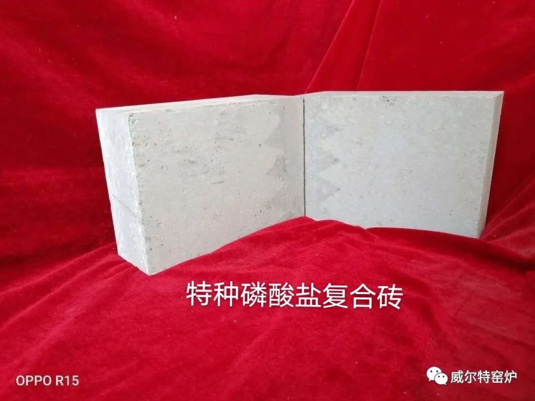 復合改性磷酸鹽磚內襯采用干砌,環砌法(或者濕砌筑法),磚與磚之間的放射縫中夾入薄鋼板δ=1mm,每2環加1mm厚紙板膨脹縫,磚環應相互平行并同軸向中心線垂直,由于鎂鋁尖晶石磚怕水,故加工鎂鋁尖晶石磚時采用特殊鋸片進行干切;靠窯體砌高鋁磚時,高鋁磚下部凹槽處放置硅酸鋁纖維氈,起到降低窯溫的作用,高鋁磚采用濕砌環砌法,砌筑時磚應緊靠窯體,其間縫隙不應大于1mm 。