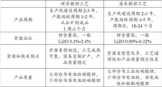 表:礦石提鋰和鹽湖提鋰比較