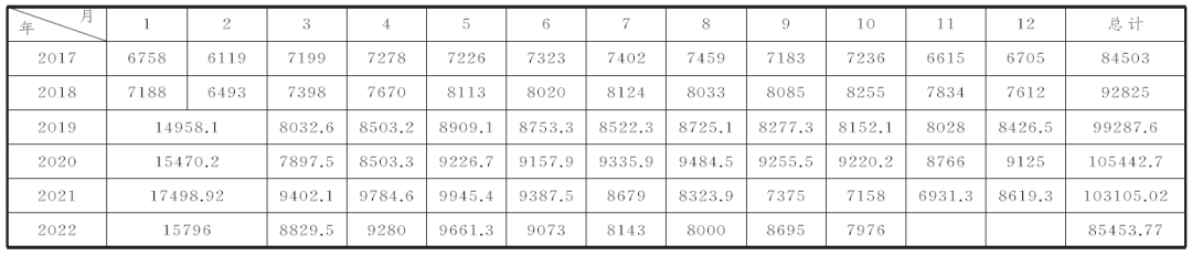 表2 2017~2022年粗鋼產量統計表(單位:萬噸)