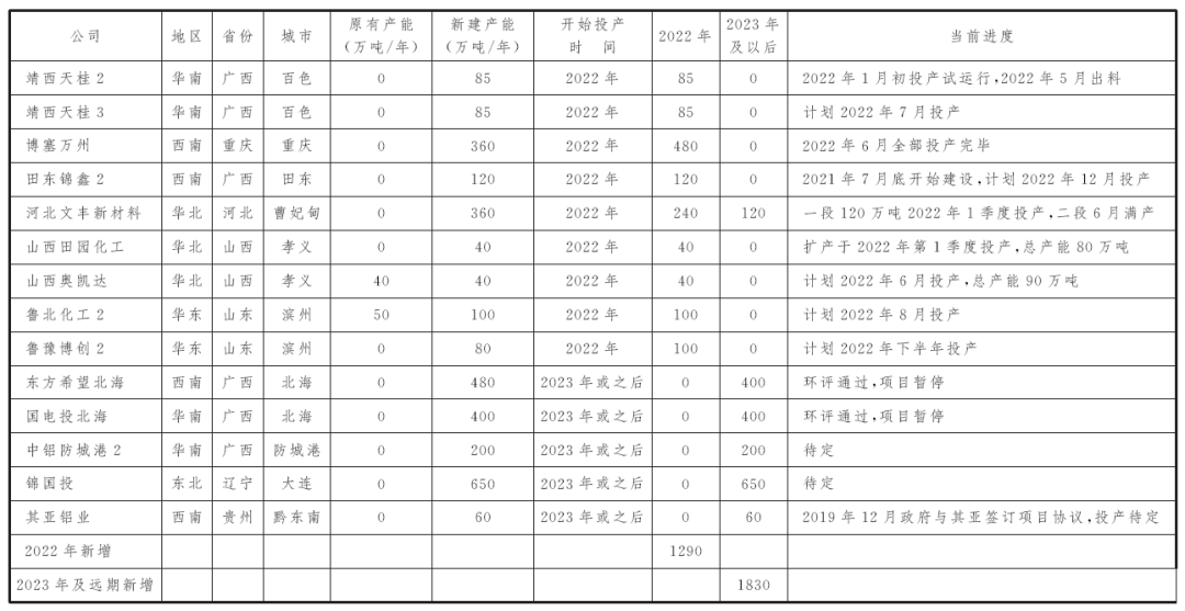 預計2022年新投氧化鋁產能將達到1290萬噸,在下半年產能繼續保持快速增加的形勢下,氧化鋁后續價格或存在下行壓力。