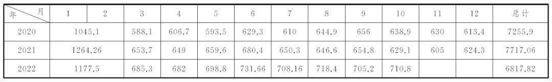 表4 2020~2022年氧化鋁產量統計表