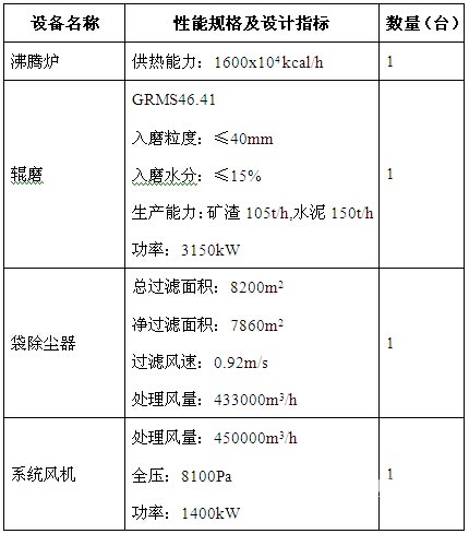 該生產線是按照年產60萬噸礦粉/100萬噸水泥設計,粉磨系統主要設備配置及性能參數見表1: