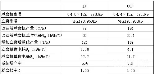 η是一個變數,它決定于預粉磨設備的型式,相關工藝參數,粉磨流程,在系統中吸收的功率等,據測定,隨著預粉磨設備吸收的功耗增加,η值會略有降低。