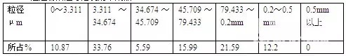 我們對廣東JYSN水泥廠(上圖2聯合粉磨系統)的VPM出料以及經V選選粉后旋風筒收集的與收塵器收集的進球磨機的2種物料進行取樣,做顆粒級配分析,結果如下: