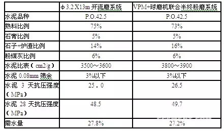 水泥質量相對于球磨機開流系統沒有降低,相反,在熟料少使用2%的情況下,3天強度反而提高了2.5MPa,這主要是因為水泥比表面積比老線高了300cm2/g。