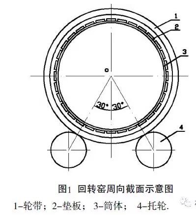 為解決回轉(zhuǎn)窯壓條頻繁掉落的故障,必須恢復(fù)輪帶內(nèi)表面與墊板外表面之間的間隙,使回轉(zhuǎn)窯在運轉(zhuǎn)過程中輪帶剛好箍在筒體墊板上,降低墊板與輪帶的磨損,如直接更換輪帶與原墊板,不僅維修費用高,而且工程量大。公司采取增加墊板的厚度和使用輪帶專用耐高溫固體潤滑劑以予解決。