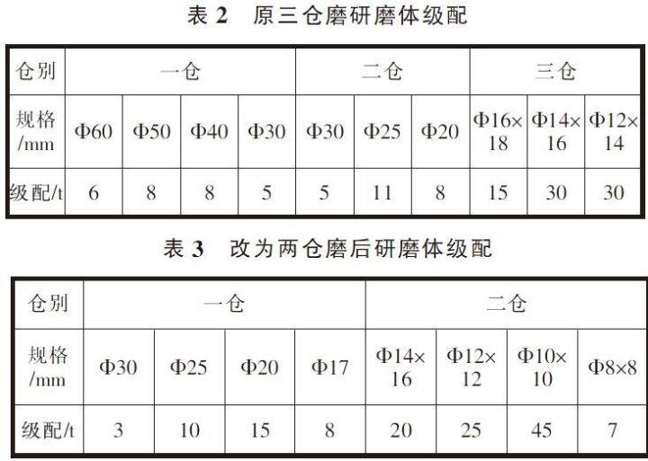 2 球磨機磨內改造和級配調整