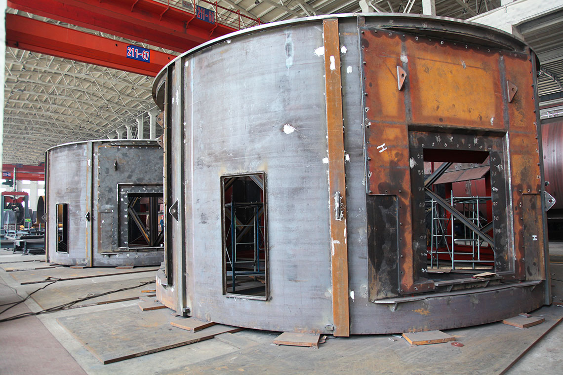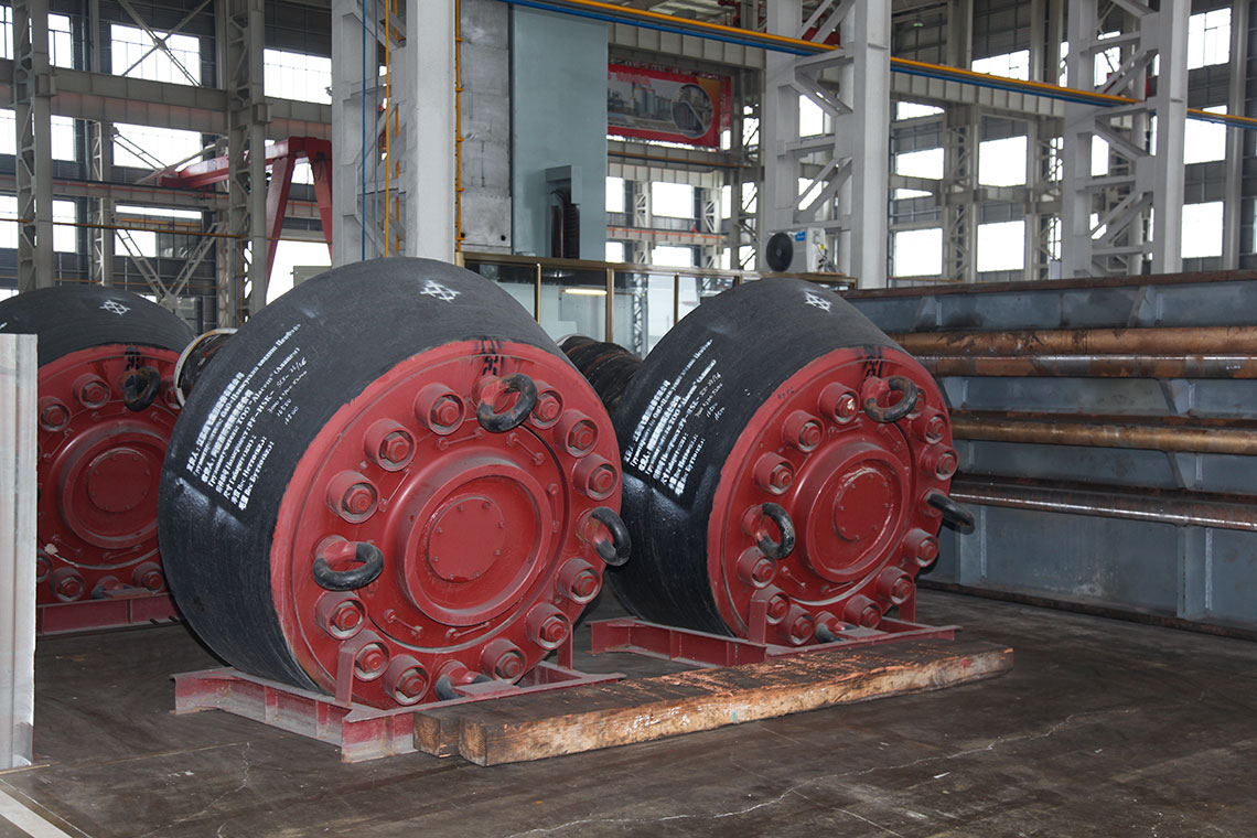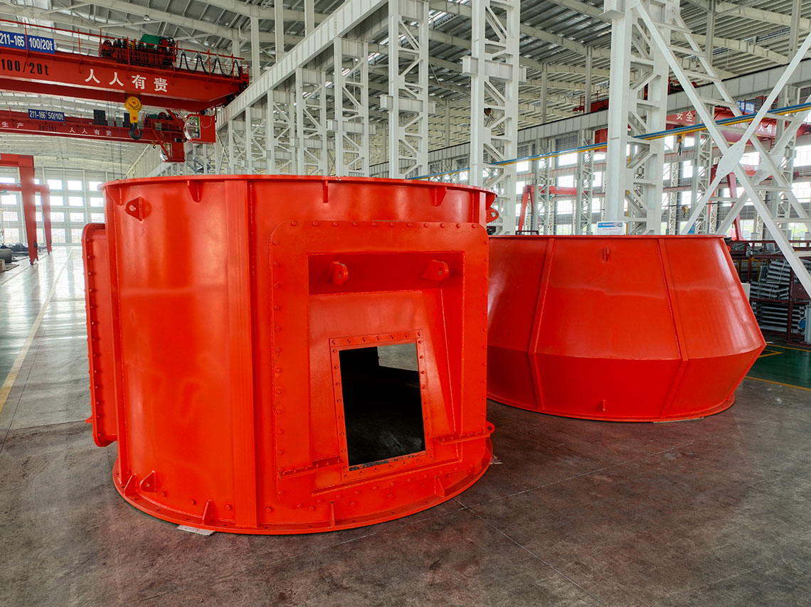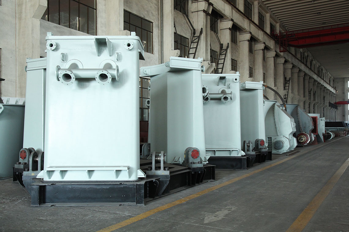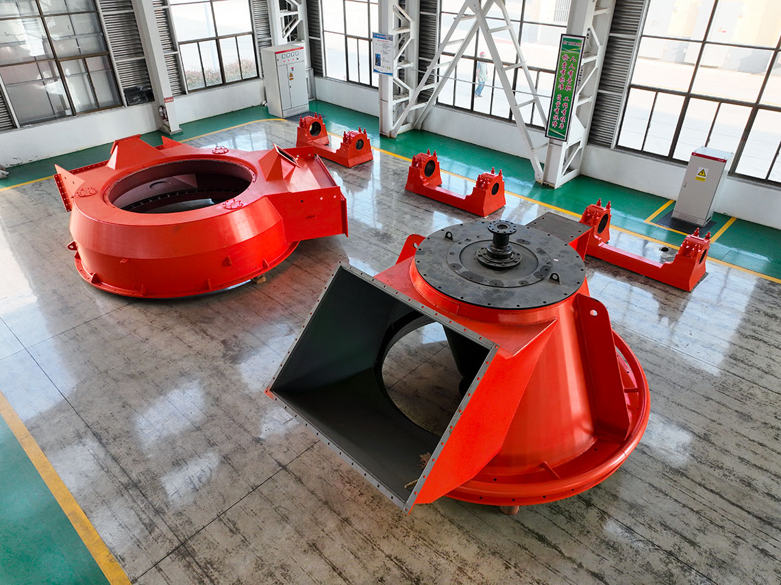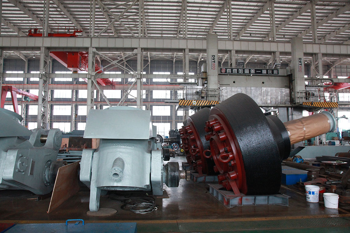 磨煤機(jī)三個(gè)磨輥由旋轉(zhuǎn)的磨盤帶動(dòng)進(jìn)行碾磨作業(yè)。入磨物料經(jīng)中心落煤管落在磨盤上后,由旋轉(zhuǎn)磨盤產(chǎn)生的離心力將其輸送至碾磨輥道上碾磨。碾磨壓力由彈簧或液壓加壓裝置產(chǎn)生,通過靜定的三點(diǎn)系統(tǒng),碾磨力均勻地傳至三個(gè)磨輥,通過加壓系統(tǒng)壓力傳至基礎(chǔ)。煤粉的干燥和輸送利用熱風(fēng)來進(jìn)行。熱風(fēng)通過噴嘴環(huán)均勻分布于磨盤四周,將經(jīng)碾磨的物料干燥并輸送至磨機(jī)上部的分離器。物料的粗細(xì)粉在此分離,細(xì)粉排出磨機(jī),粗粉重新返回磨內(nèi)碾磨。物料中的一些不可破碎物可通過磨機(jī)下部的排碴口排出。磨煤機(jī)主要由基礎(chǔ)部,減速機(jī),下架機(jī),中架機(jī),磨盤,磨輥,加壓裝置,分離器,正壓風(fēng)密封裝置,蒸汽吹掃裝置等部件組成,還配有主電動(dòng)機(jī),潤滑油站,液壓站和密封風(fēng)機(jī)等附屬設(shè)備,另備有慢速傳動(dòng)裝置,安裝檢修專用工具,扶梯平臺(tái),煤粉分配器,速斷閥等配套設(shè)備供用戶選用。磨煤機(jī)采用液壓加壓系統(tǒng),在運(yùn)行中即可對(duì)粉磨壓力進(jìn)行調(diào)整,并具有更好的過鐵保護(hù)性能。在原標(biāo)準(zhǔn)型的基礎(chǔ)上增加了磨輥翻出裝置,并提高了磨體的抗爆能力。