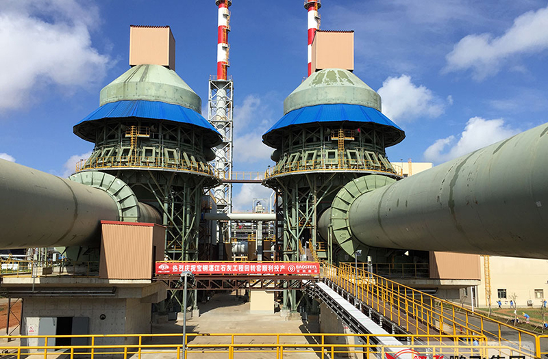 回轉窯燃燒產生的高溫煙氣,在預熱器內與石灰石進行熱交換以后,溫度降至260℃以下,經多管冷卻器冷卻然后進入高溫袋式除塵器,除塵后由高溫風機經煙囪排入大氣,排入大氣的煙氣含塵濃度小于30mg/Nm³。